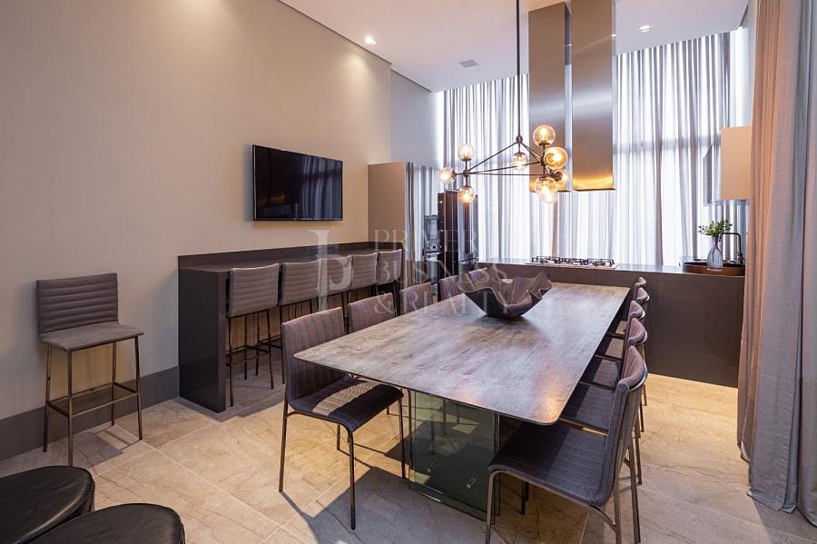 • Living integrado com cozinha, sala de estar, jantar e TV